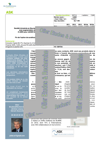 Fabricant de puces pour cartes sans contacts qui a fait récemment son IPO, ASK vend ses produits dans le monde entier, et devrait bénéficier à l'avenir des bonnes perspectives de ses marchés-clients : les documents d'identité infalsifiables et les titres de transports électroniques.
