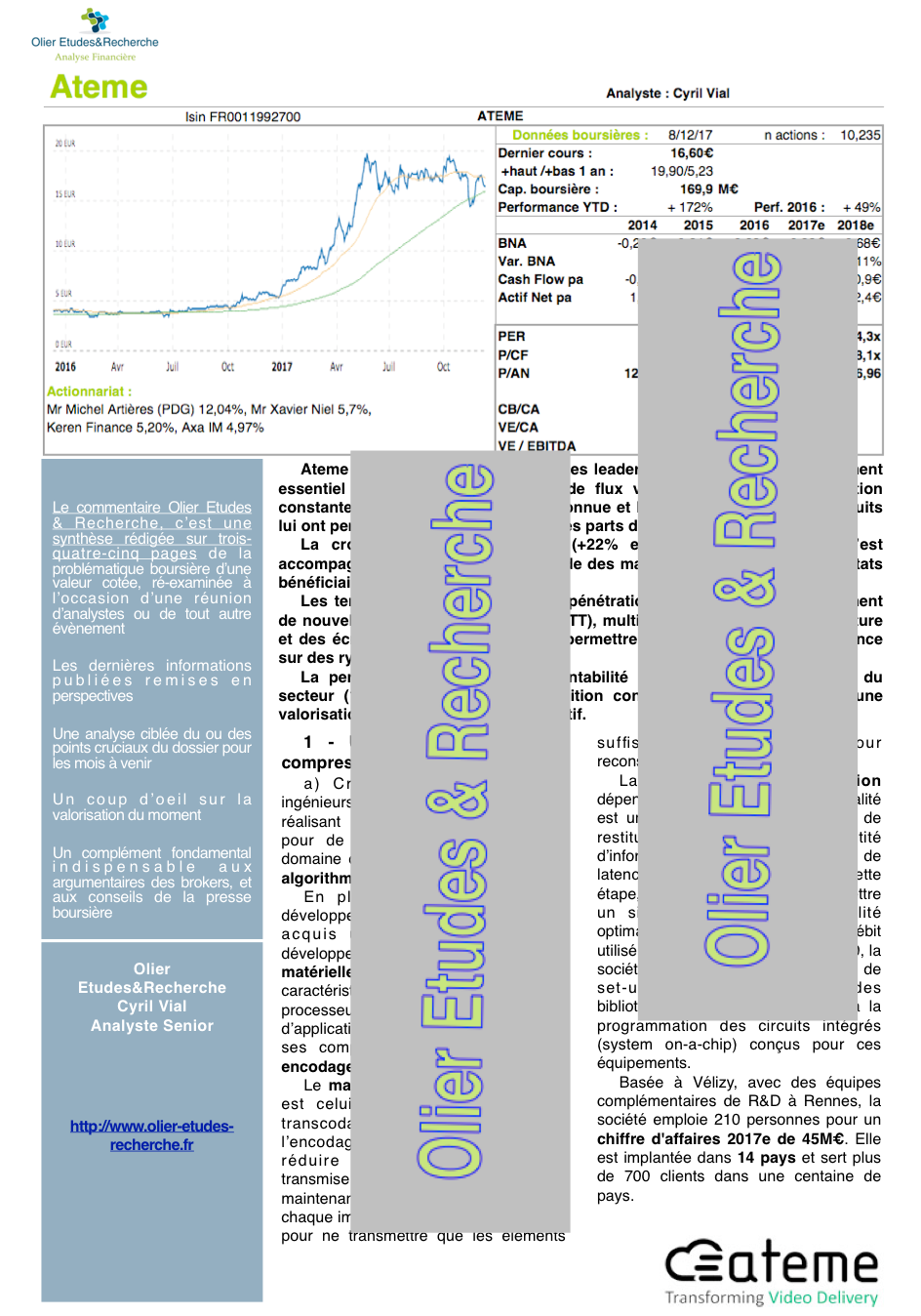 Une étude fondamentale très complète (11 pages) signée Cyril Vial, Analyste Senior, pour Olier Etudes & Recherche.