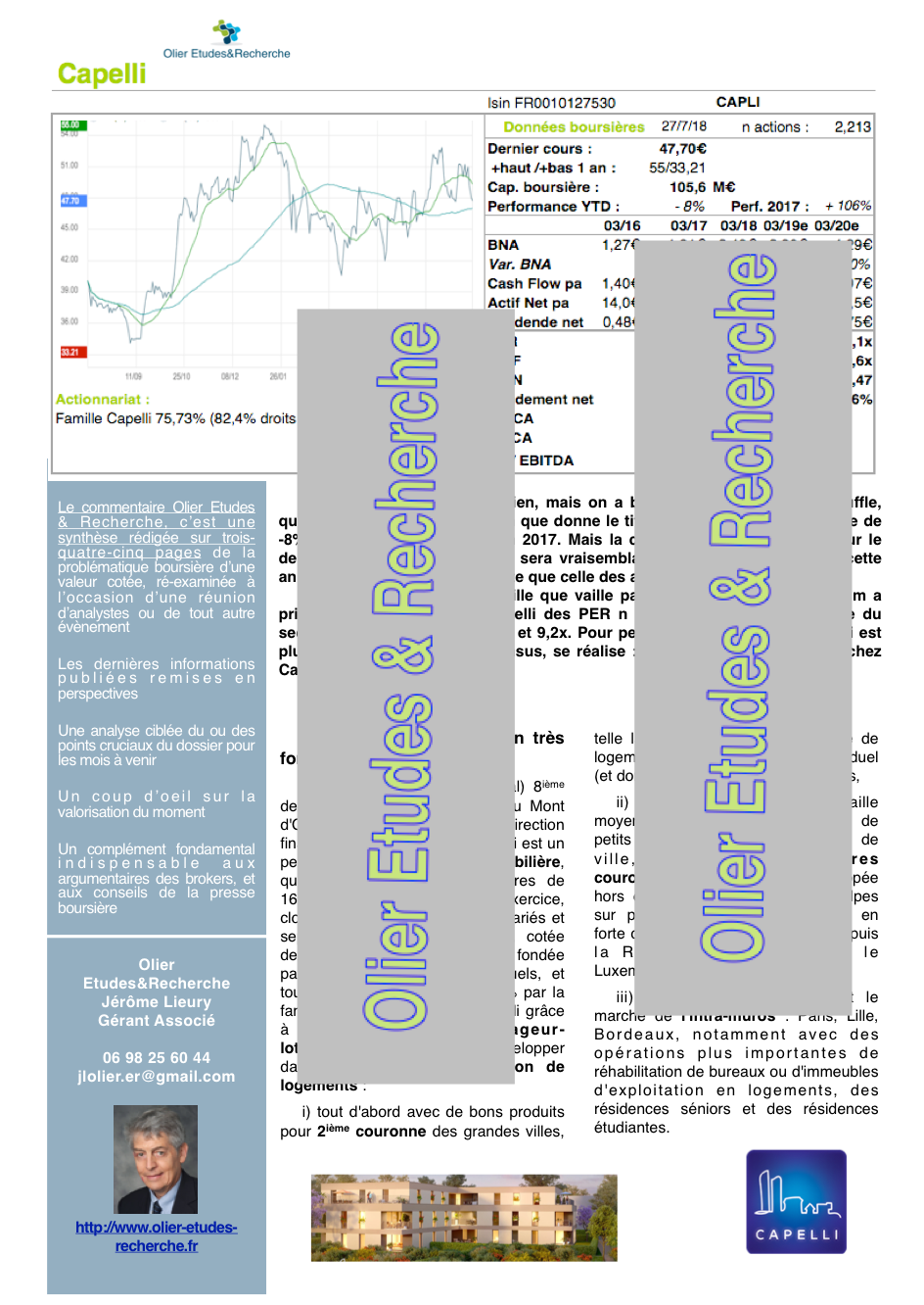 Petit promoteur immobilier qui a semble-t-il les bons produits pour le marché du logement, Capelli est en forte croissance sur le dernier exercice clos fin mars. Mais, mieux encore, sa croissance sera vraisemblablement encore plus forte cette année, et encore et toujours plus forte que celle des autres promoteurs cotés.