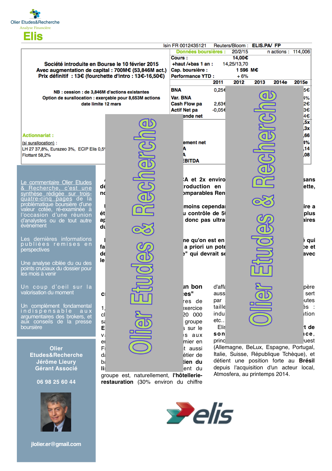 Champion français des services aux entreprises, et du service du linge d'hôtellerie-restauration en particulier, Elis fait son IPO finalement en bas de fourchette, mais sans décote évidente cependant par rapport à ses deux grands comparables Rentokil Initial et Berendsen. Une décote qui se justifie moins il est vrai puisque, après opération, le principal actionnaire pré-IPO n'est finalement plus majoritaire au capital. Et alors que cette mid-cap bénéficie, selon notre analyse financière en tous cas, d'un bon positionnement sur un bon métier, et peut faire de la croissance et générer du cash. Soit un "upside" significatif, qui devrait se matérialiser au fur et à mesure du désendettement.