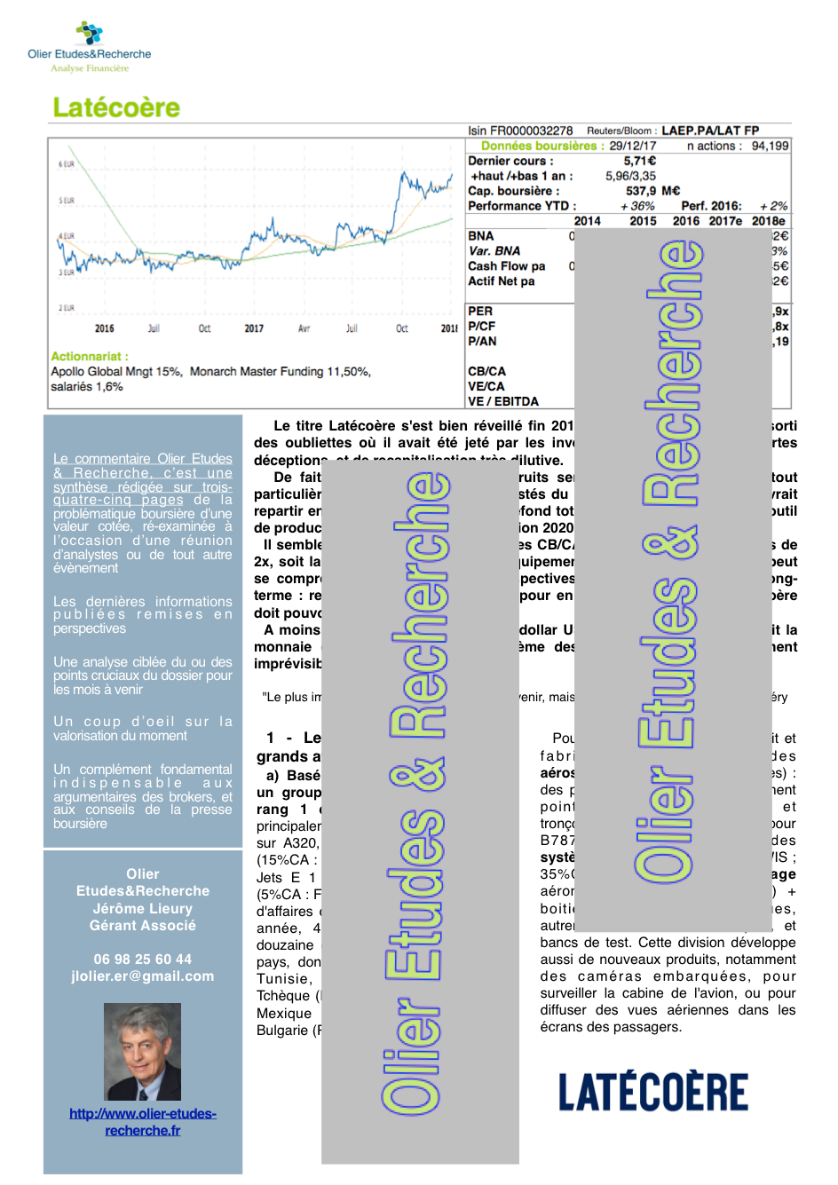 Le titre Latécoère s'est bien réveillé fin 2017, et semble définitivement sorti des oubliettes où il avait été jeté par les investisseurs pour cause de fortes déceptions, et de recapitalisation très dilutive.