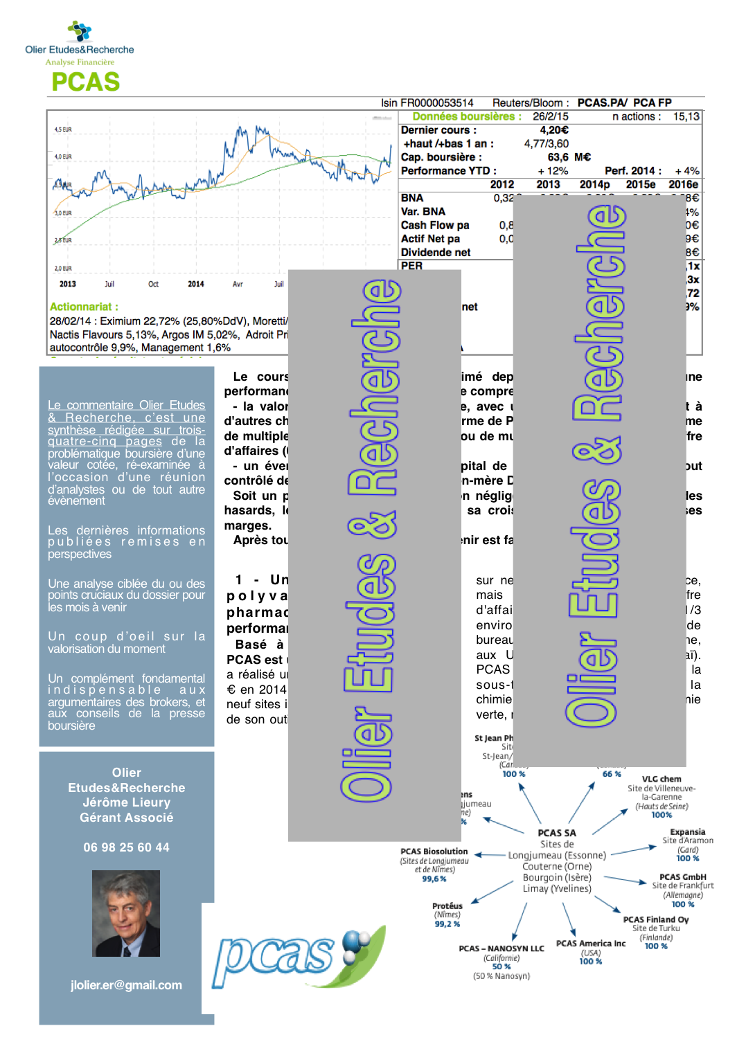 Le cours de PCAS s'est bien ranimé depuis quelque temps, soit une performance de +12% ytd. Ce qui peut se comprendre, étant donné, selon notre analyse financière :